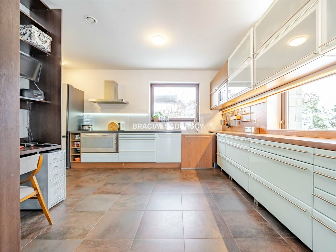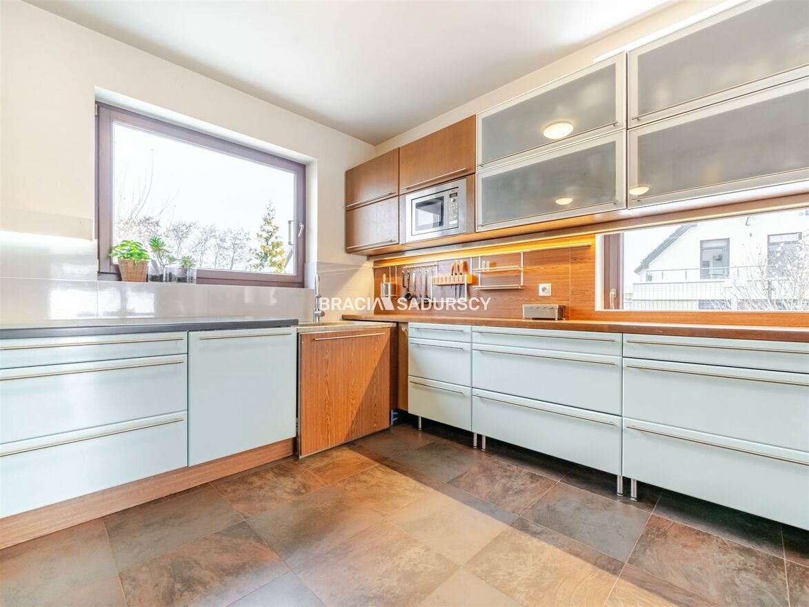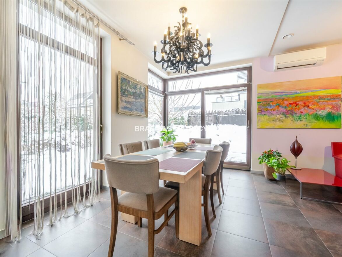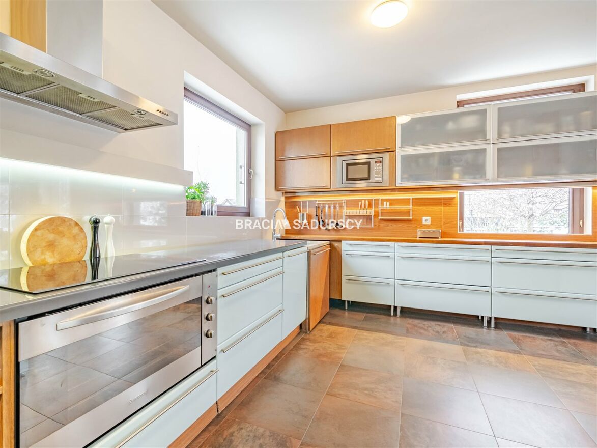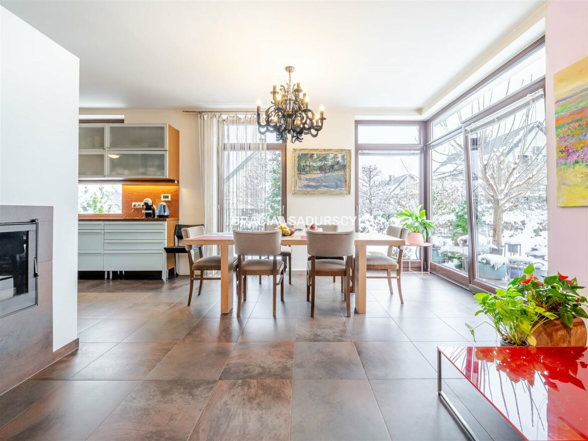 Dom wykończony został w wysokim standardzie, z wykorzystaniem naturalnych materiałów i dbałością o każdy detal. Przestronne okna zapewniają doskonałe doświetlenie wnętrz, a widok na otaczającą zieleń nadaje nieruchomości wyjątkowy charakter. Działka o powierzchni niespełna 4 arów mieści starannie zaprojektowany i zadbany ogród - idealne miejsce do wypoczynku.