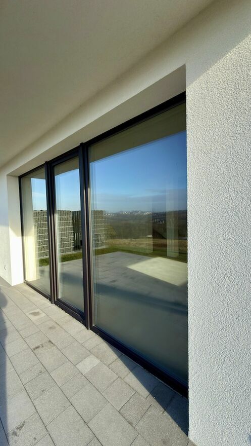 Ciemna stolarka okienna (okna trzyszybowe trzy uszczelkowe na markowych profilach) i drzwiowa,